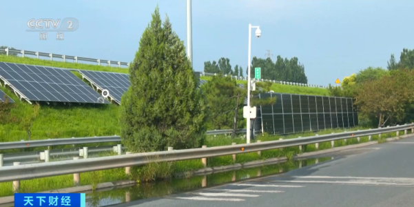 在超级快充站的顶棚上、高速公路边坡,包括服务区的屋顶上都铺满了光伏板。工作人员介绍,这些光伏每年可以发出115万度的绿电,除了可以供应超级充电站的用能需求,还能满足整个服务区的日常用电需求。